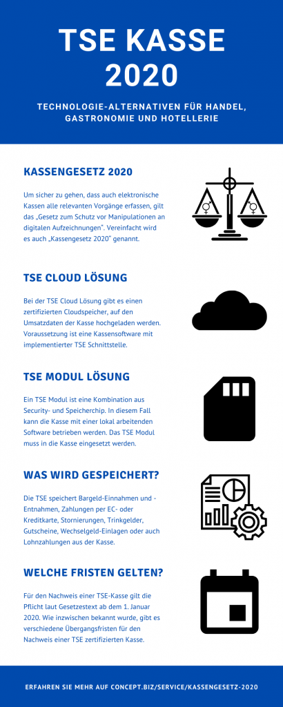 - Zertifizierte Technische Sicherheitseinrichtung (TSE): Die Kassen sollen über ein Sicherheitsmodul, ein gesichertes Speichermedium und eine digitale Schnittstelle vor Manipulationen geschützt werden. Hieran schließt sich die wichtige Frage für Betriebe an, ob ggf. neue Systeme angeschafft werden müssen, um den neuen Regeln zu genügen. Hierzu lesen Sie im Folgenden noch mehr Details.